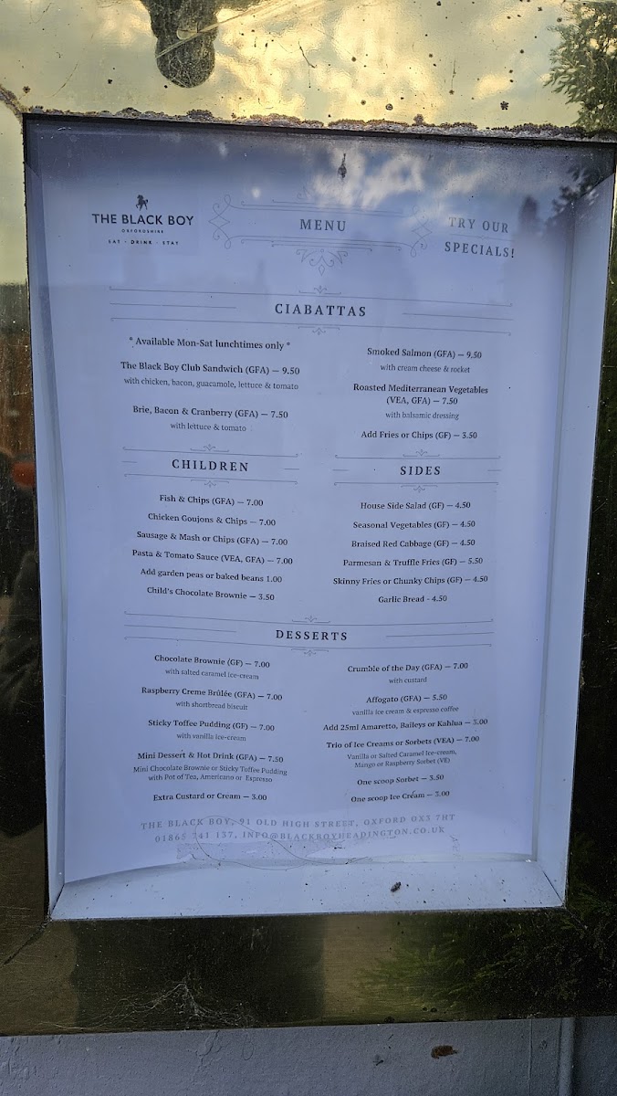 The Black Boy Headington Menu at 91 Old High St, Headington, Oxford, offers an outstanding blend of classic British pub fare and creative modern dishes in a charming, rustic setting. With a clear focus on quality ingredients and thoughtful preparation, the menu caters to a broad range of tastes while preserving a sense of tradition.